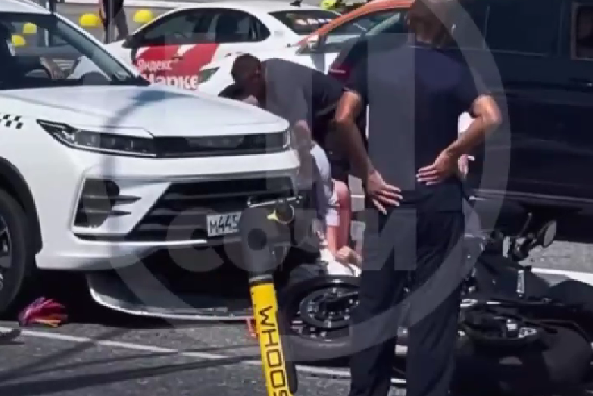 В Сочи мотоциклист и самокатчица врезались друг в друга и отлетели на машинуОба участника ДТП получили травмы