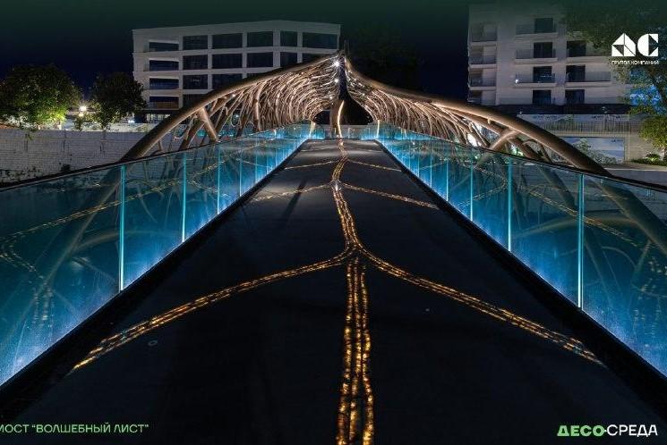 Мост «Волшебный лист» в Сочи претендует на звание лучшего светового объекта РоссииУникальная подсветка, реагирующая на движение и смену сезонов, вошла в шорт-лист престижного конкурса «Российский светодизайн — 2025»