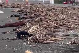 В Сочи пляжи засыпало брёвнами, а горы замело снегом