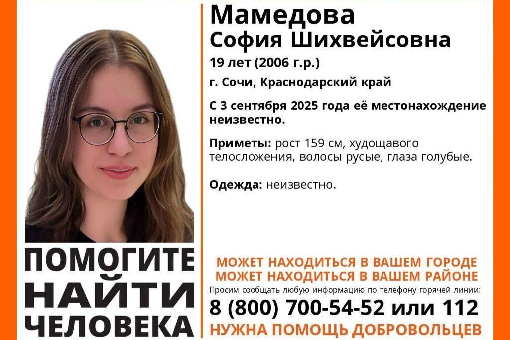 В Сочи бесследно исчезла 19-летняя туристка из КоломныНа курорт она прилетела 3 сентября и сразу пропала