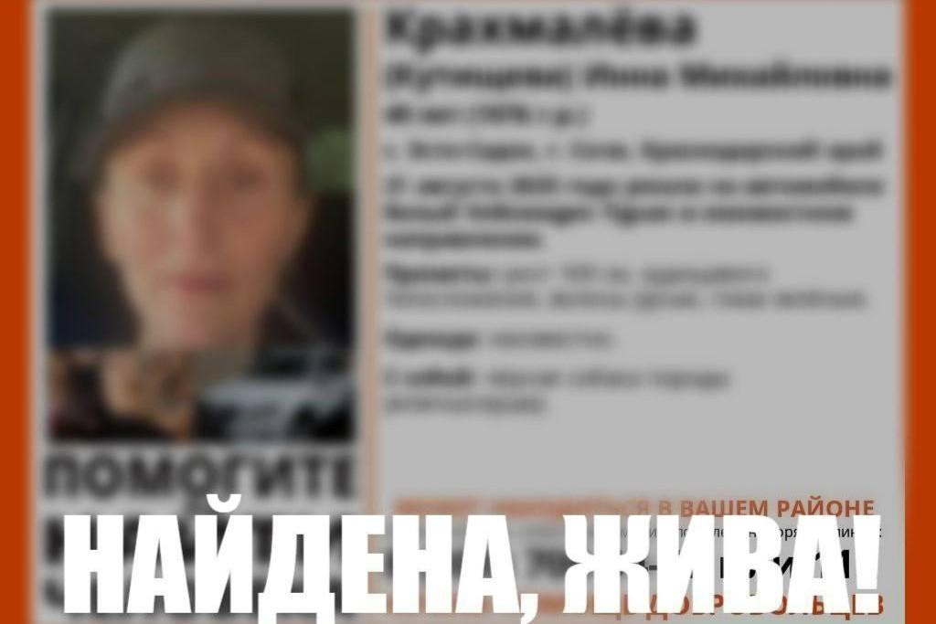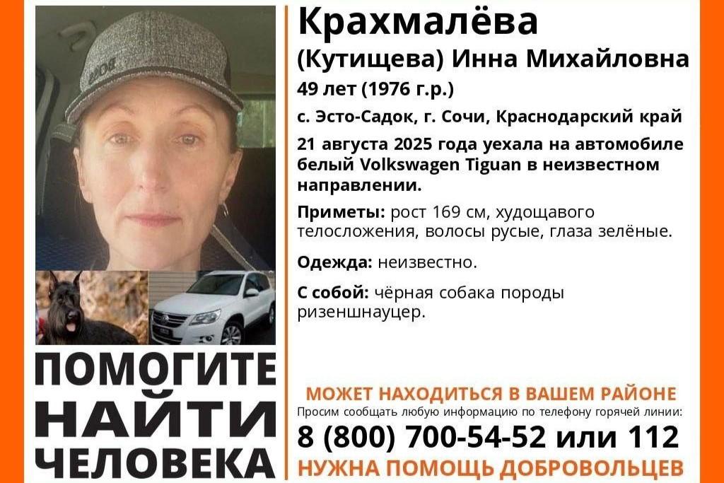 В горах Сочи нашли пропавшую вместе с автомобилем и собакой женщинуЧетыре дня Инна Крахмалева не выходила на связь