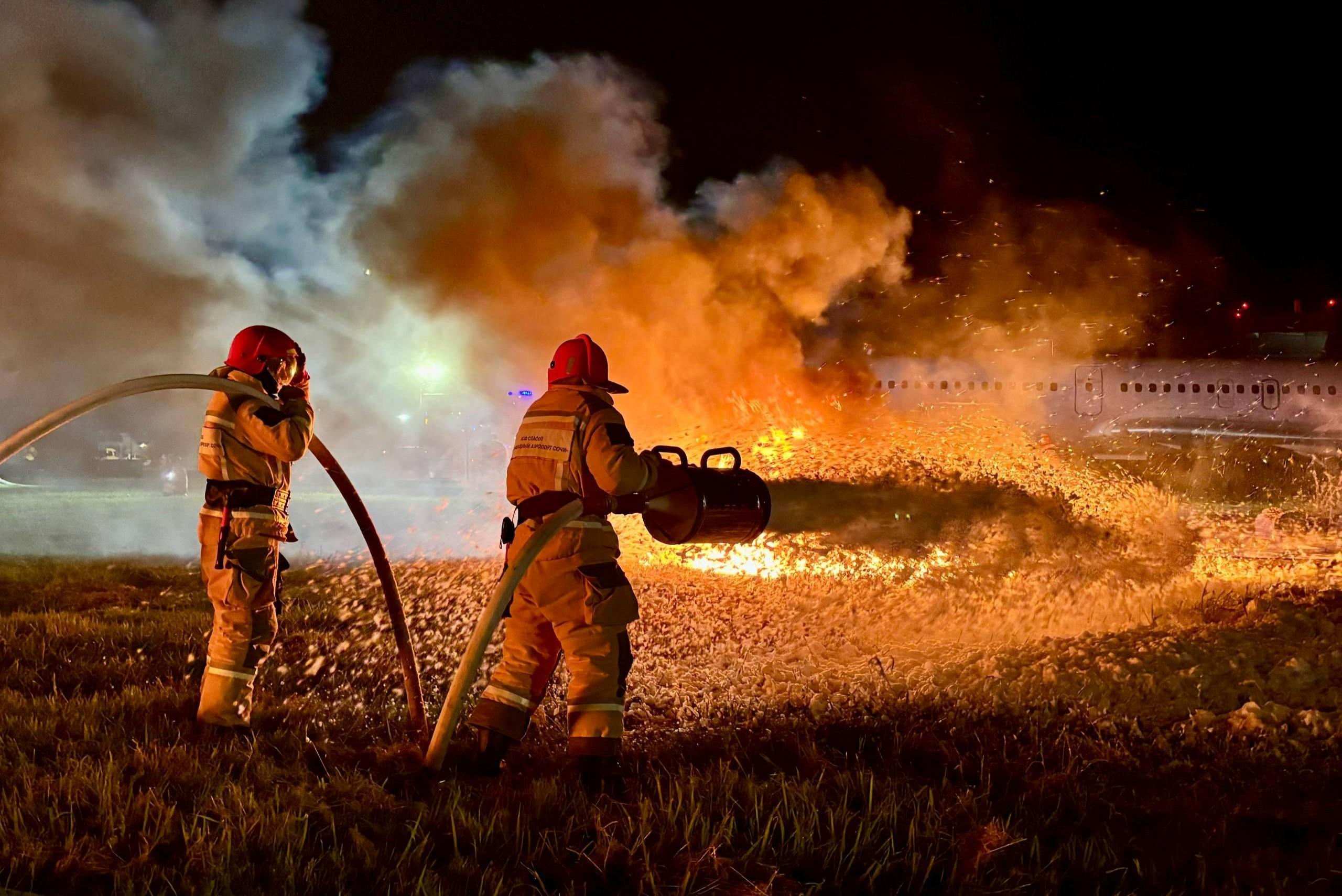 Спасение пассажиров и членов экипажа, тушение пожара на борту. В аэропорту Сочи прошли полномасштабные ученияВ них приняли участие 101 человек и 28 единиц техники